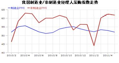 制造業(yè)PMI除3月份短暫回升以外,持續(xù)小幅回落,顯示出經(jīng)濟(jì)增速逐漸趨緩。 5月份從11個分項(xiàng)指數(shù)均有不同程度回落,其中,新訂單指數(shù)、積壓訂單指數(shù)、購進(jìn)價格指數(shù)、原材料庫存指數(shù)回落較明顯,回落幅度超過1個百分點(diǎn),尤其以購進(jìn)價格指數(shù)回落幅度為最大,達(dá)到5.9個百分點(diǎn) 。