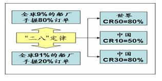 整個造船市場某種程度上遵循“二八定律”,換句話說,少數(shù)幾家造船廠(集團(tuán))控制整個新造船市場。