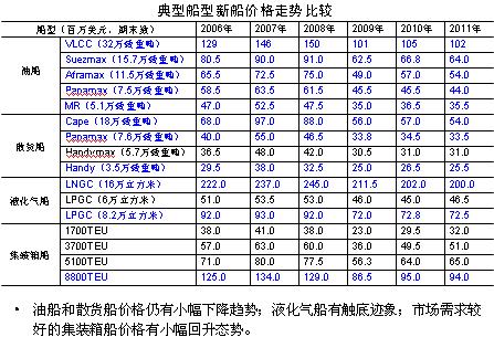 第二,2011年新船成交量將再度大幅回落。按1-6月成交態(tài)勢測算,今年全年成交量大致在8000萬載重噸左右,較上一年下滑幅度極有可能超過40%。