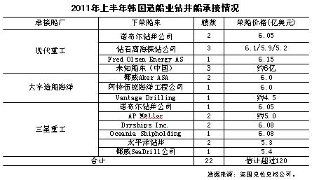 1-6月現(xiàn)代重工、三星重工和大宇造船海洋合計(jì)接單總金額超過330億美元,不知道是同期中國全行業(yè)接單價值總量的多少倍?