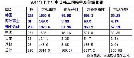 日本承接的訂單絕大多數(shù)來自國內(nèi)船東,這些訂單對我們來說實(shí)際意義并不大。