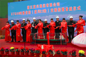 2012年上午10時18分,定海五奎山七萬噸碼頭彩旗飄飄、鞭炮齊鳴、軍樂隊奏著歡快的樂曲。浙江省海運集團(tuán)舟山五洲船舶修造有限公司舉行了隆重的 “富興22輪”交接船暨首航儀式。浙江富興海運有限公司、浙能集團(tuán)、浙海海運公司以及有關(guān)單位領(lǐng)導(dǎo)參加了剪彩儀式。五洲公司總經(jīng)理駱永法和富興海運有限公司郭新明總經(jīng)理發(fā)表了熱情洋溢的講話,并互相贈送了禮品。