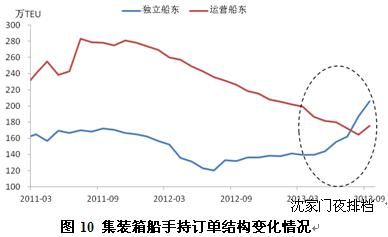 集裝箱船方面,班輪公司在上一輪大型船訂造熱潮中,主要通過自有資金進行訂造。隨著班輪公司運力升級的持續(xù)推進,新一輪訂造在2012年末再次啟動,推動集裝箱手持訂單量開始回升。但由于班輪公司運營持續(xù)艱難,自有資金訂造能力受到大幅削弱,卻又不得不進行運力升級以保持市場份額,從而借助獨立船東的力量發(fā)展運力,導致集裝箱船手持訂單的結(jié)構(gòu)發(fā)生很大變化,獨立船東手持訂單量逐步超過運營船東,同時也推動融資租賃交易數(shù)量和融資額大幅增長。