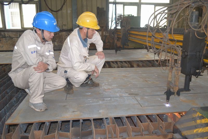圖為數(shù)控鋼板切割機(jī)正在切割鋼板